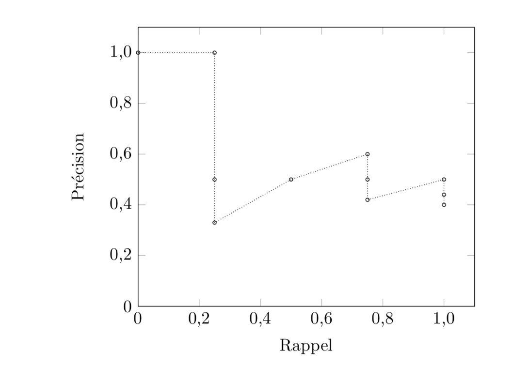 - À partir de ce fichier dessiner la courbe Précision et Rappel pour la reqûete en question.